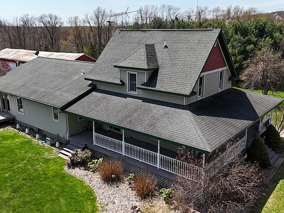 Welcome to your forever vacation property! This extraordinary property is nestled on over11 acres within the highly desirable Gull Lake School District. It features a beautifully updated home, a 6-car garage, a stunning event barn, a workshop, and a spacious storage pole barn—perfectly suited for both serene living and exciting entrepreneurial ventures. Whether you're envisioning a private retreat or launching your next business, this property offers endless potential, with a fully equipped beauty salon and a picturesque barn ideal for hosting special events. Step onto the charming wraparound front porch and begin your mornings on the porch swing, soaking in the peaceful surroundings. Enter through classic French doors into a sun-filled living room, where elegant tray ceilings, rich hardwood floors, and oversized windows create a warm and inviting space. The kitchen is a true chef's delight, featuring white cabinetry, Corian countertops, newer appliances, a luxurious tin ceiling, and a breakfast bar perfect for casual meals. Retreat to the expansive primary suite privately located at the far end of the home. This sanctuary boasts a cozy electric fireplace, a sitting area, and French doors that lead directly to the hot tub on your back deck, offering breathtaking views of your private acreage. The en-suite bathroom includes dual vanities and plenty of space for relaxation. Also located on the main floor is a second bedroom and a fully functioning beauty salon, thoughtfully designed with its own private entrance and half bath, making it ideal for welcoming clients without impacting the main living space. Whether you're an established stylist or dreaming of starting your own business, this turnkey setup offers a unique opportunity to work from home while maintaining privacy and professionalism. Upstairs, you'll find a generous third bedroom with two closets, a second full bath, and a cozy reading nook at the top of the staircase. Beyond the beautiful home, this property is packed with dream-worthy extras. An oversized attached 2-car garage and a detached 4-car garage provide plenty of room for vehicles, toys, or a car collection. The real showstopper? A stunning 40x60 event barn featuring wood floors, an upper loft deck, and two bathrooms. Perfectly suited for weddings, reunions, birthday celebrations, or your next great business venture. Need space to build, create, or tinker? The 44x40 Pole Barn has an insulated workshop and at the back of the pole barn a huge storage area with a 12-foot sliding door. Expansive grounds that are perfect for outdoor enthusiasts. Ideal for recreation, gardening, or simply enjoying the peace of country living. All of this, just minutes from town and local amenities. Whether you're looking for a private retreat, an income-producing property, or a bit of both. This one-of-a-kind property offers it all.