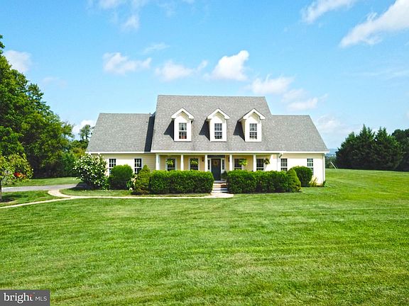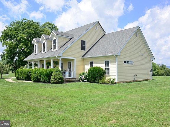Immaculate and lovingly maintained 3 level Cape Cod on 10 acres. Aprox 3300 finished SQFT plus almost 2000 SQFT in the lower level waiting for your touches. Bring horses! NO HOA , NO RESTRICTIONS. Mountain views surround you as you are nestled right between the farmland and the sunsets. Bring your horses, goats, chickens, cars, trucks, RV's and love and enjoy life in country! Quiet yet convenient for commuters, minutes to town center and 30+ minutes to Leesburg. Beautifully appointed with spacious rooms with cherry floors throughout the main level and hallway upper level. Main level master and 3 bedrooms up. The home features a large gathering great room with built-ins, wet bar, gas fireplace and plenty of windows to fill the room with sunshine. Kitchen boasts custom cabinets, granite, island, counter bar, range and wall oven and tile floor all to enjoy your family or guest in the the adjacent cozy family/hearth room. Master suite features main level living, walk in closets, laundry room and a spacious bathroom with granite and double sinks and large tub. Separate dining room, office, craft room(could be easily converted to Mud/Laundry room) complete the main level. Upstairs are 3 spacious bedrooms with a study area loft and an updated bathroom. Outside enjoy nature on the large front porch that includes 2 ceiling fans or the rear patio that boast stone hardscape(wired for lighting) and pergola creating the perfect spot to enjoy an outdoor meal and take in the magnificent views. House features, Hardy board siding, 2X6 framing, Heritage 30 year shingles, 80 gal water heater, pellet furnace alternative heat, 500 gal propane tank for FPs, power vents fans in attic. Approximately 8 open acres and 2 wooded. Original farm house ruins located in rear wooded section please do not enter. Many more feature to list but come see for yourself!