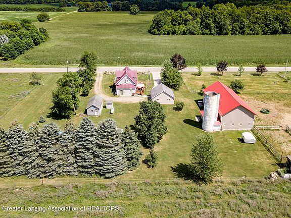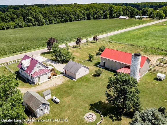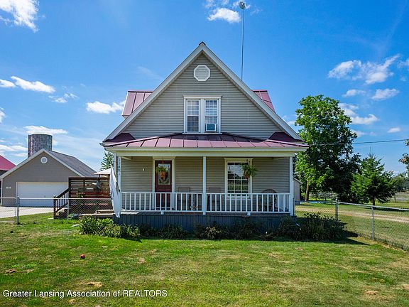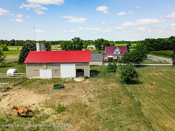 Renovated 3 bed / 2 bath farmhouse on blacktop road with 5 acre farm set up as horse property, but could accommodate other animals as well. This property is conveniently located between Alma and Mount Pleasant. It has an open-plan living space with a main floor master and private en-suite. There is a full basement with plenty of storage and a newer Amana energy efficient furnace. The new well installed in 2019. A wide front porch or side deck would be great to have your morning coffee on. Thereis a brand new chain link fence in the front yard. All horse paddocks have an electric fence, four inside stalls and four run-ins. 60x30 barn, new roof 2018, new siding 2017, with hay loft and amazing 8 ft. chandelier out of a Detroit casino for those barn parties. There is also a 2+ car detached