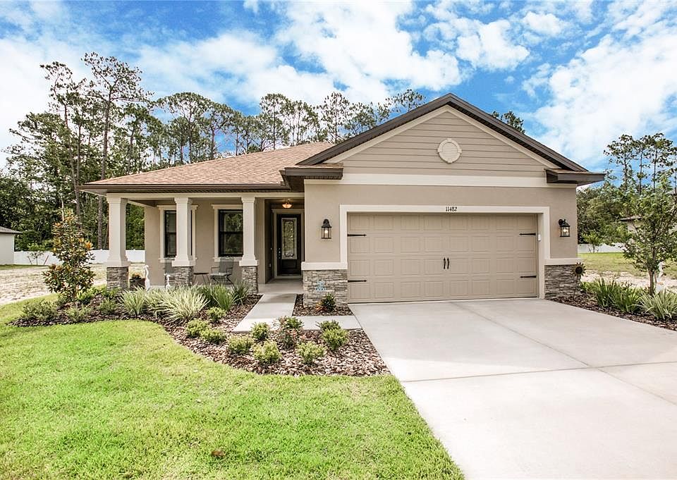 You'll love this nearly new home from Tampa Bay's premier builder, Vitale Homes. The "Pompei" is a perfect blend of elegant design and quality construction. Great curb appeal with a columned front porch, and subtle stone accents. As soon as you enter through your 8’ fiberglass door with satin glass insert, you'll notice the Vitale Difference. The kitchen features 42” cabinets with flat panel doors and 3-5/8” crown molding, granite countertops, GE Energy Star appliances (range, dishwasher, and microwave), and an island breakfast bar that opens to the large great room perfect for entertaining. Mohawk 18x18 ceramic tile floors throughout the foyer, kitchen, and great room. The owner's suite comes with an oversized shower, and a large walk-in closet. There are two additional spacious bedrooms, and bedroom 3 also has a walk-in closet. You also get an inside laundry with utility sink, an extended screened lanai in back, and a two car garage with the air handler mounted in the recessed ceiling. When buying or building a home, what you don't see is just as important as what you do see. Not only does this home come with R38 insulation in the ceilings, it also has R11 Foam Injected insulation in all exterior block walls. Quality construction is everywhere: Taexx® Pest control tubing system in the walls, framing 16" on center, anti-fracture underlayment protection for the tile floors, and even a reinforced slab for strength. Rose Haven is a cozy community with great amenities. It has a gated entry, with a beautiful lakeside boardwalk, and community pool and cabana. As mentioned above there is NO CDD FEE, and a low HOA fee of $123 a month. This fee not only covers the pool, cabana, boardwalk, and entry gate, but also covers your trash pick up and basic cable. Conveniently located just a few miles from the Suncoast Parkway for quick commute to Tampa, it is also close to shopping, parks, restaurants, and beaches. So make sure this home is on your list to see, and come experience the Vitale Difference today!!