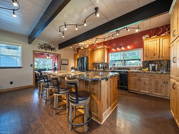 This IMMACULATE property is a must see! 4/2 completely remodeled inside and out. This home offers almost 5 acres complete with pipe fencing, gated entrances, 3 car garage, 4 stall barn, round pin, seasonal creek, RV and equipment parking, 37 owned solar panels, gorgeous granite slab counters throughout, custom cabinets and doors, on demand hot water, new windows, new heating and air... the list continues! You do not want to miss this beautiful property!