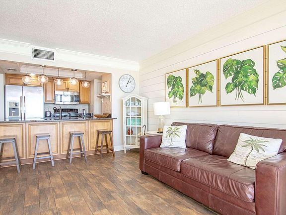 Beautiful renovated gulf front condo at popular Edgewater Resort. includes a custom made bookshelf/cabinet and wet bar, tile showers, and electric blinds for the gorgeous gulf view. Professionally decorated and has crown molding, shiplap as well as updated lighting. Unit sleeps up to 7. The Edgewater Resort includes private beach access, tropical pools and hot tubs, Kid's Club with Splash Pad, Poolside bar and restaurants. Owner's pets are allowed and owners have access to play unlimited Golf, Shuffleboard, Tennis and Pickleball. Shopping and restaurants are also located directly across the street.
