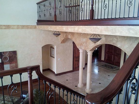 Custom built home with beautiful architectural details throughout. High end finishes including Slab Granite, extensive Brazilian Cherry hardwood flooring & Travertine. Soaring ceilings, dramatic 2-Story stone fireplace, grand staircase & two-story wall of windows. Private, main level Master with access to expansive covered back patio & featuring a Master Bath w/full Travertine walk-in shower, soaker tub, dual vanities & large walk-in closet. Office includes built-ins. + RV Parking
