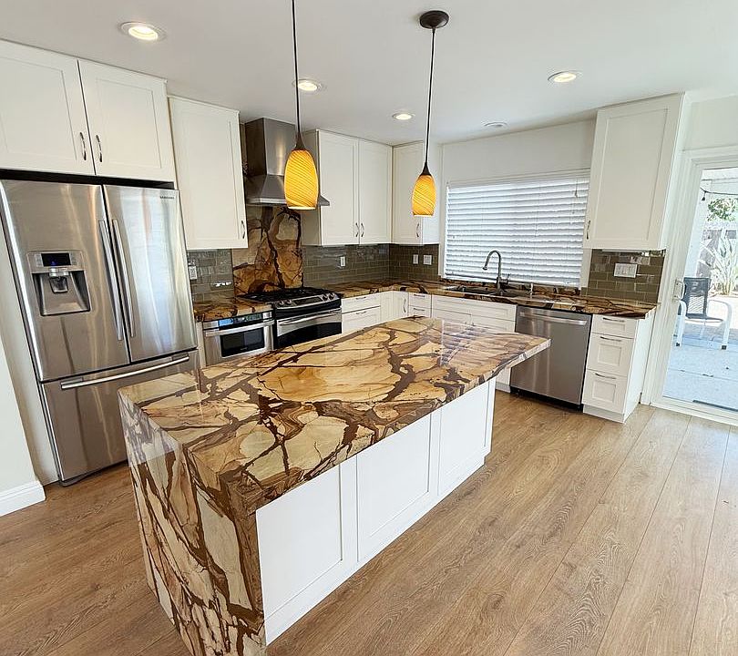 Step inside to find gorgeous hardwood flooring throughout, freshly painted interior and exterior, and a large open-concept living, dining, and kitchen area perfect for entertaining. The chef's kitchen boasts sleek waterfall countertops, a spacious island, and top-of-the-line stainless steel appliances.