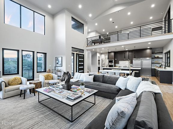 Perched high in the final phase of Soaring Hawk is this gorgeous custom home with sweeping views of Deer Valley and Mt. Timpanogos. This beauty is perfectly crafted in a quiet cul-de-sac surrounded by protected open space where you will live with nature instead of against it. Enjoy instant luxury with this furnished home by Dressed Design, where you're immediately greeted by an open floor plan that exudes warmth and spaciousness, ideal for gathering with family and friends after a day of adventure. The expansive kitchen is a chef's dream, equipped with top-of-the-line appliances, 2 dishwashers, gigantic custom island all seamlessly flowing into a comfortable living room and functional office space. Owners will enjoy a main level primary suite with exquisite bath and private patio area. Venture upstairs to discover a versatile gathering area equipped with a wet bar and three additional guest bedrooms, ensuring comfort and privacy for everyone. The home's southern exposure and strategically placed windows flood the interior with natural light, while the surrounding open spaces contribute to its tranquil atmosphere. Overlooking the stunning Wasatch Range, the residence boasts unparalleled views of Jordanelle Reservoir, Mt. Timpanogos, and Deer Valley Resort, making it a true masterpiece that offers an unparalleled living experience. The developer's excellent choice of homesite ensures that this home is not just a residence but a forever sanctuary, perfectly positioned for you to enjoy sweeping ski and mountain panoramas. Experience the epitome of luxury living in a home that is nothing short of a masterpiece.