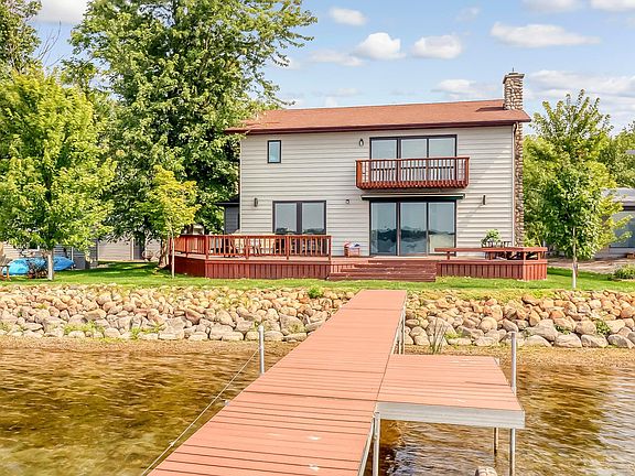 Lake Melissa. Yr.round 4BD/3BA built to impress. 72’ level lot with gorgeous hard sand lake bottom. This lake property will knock your socks of with elements of luxury combined with fabulous function. Incredibly well built custom home with 2 stall attached garage. 9’ ceilings on the main floor coupled with massive glass to the lake set the tone for refined living with spectacular views to the west. Charm added with large lake side deck outside and gorgeous rock fireplace inside. Upper level owner’s suite is spacious and overlooks Melissa. Large bonus room over the garage. New shingles 2024. Immaculately done, immaculately kept.