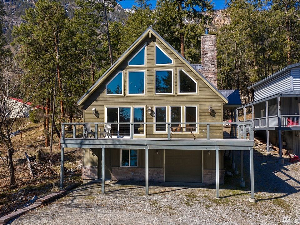 Welcome to the lake! Your quintessential cabin in the woods by Lake Chelan. Small community on the beach with a shared community dock, moorage buoy and boat launch. A very alpine feel abreast the tall old growth pines along a quiet stretch of South Lakeshore Rd. Steps to the waterfront. 2 bedrooms and 2 baths with a large sleeping loft and large extra rec. room downstairs. Good lake views from your oversized deck and plenty of parking for all of your toys. Vacation Rental friendly!