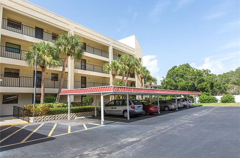 Located in Waters Edge - lake front community! This 2 bedroom / 2 full bath condo is located on the ground floor and comes with 1 covered parking space. Move right in to this well maintained condo with a split bedroom floorplan, in unit washer/dryer, newer carpet, and lots of community amenities! The kitchen has a breakfast nook, pantry, and a breakfast bar that overlooks the spacious dining room & living room. The living room has additional space that can be used as a den area, music area, or additional seating area and has sliding glass doors leading to the lanai. The large master suite has plenty of room for a king size bed, extra furniture, large walk-in closet, and sliding doors leading to the lanai. The attached master bath has a large vanity & a linen closet. The secondary bedroom is spacious and the secondary bath has a walk-in shower. Relax on your large glass enclosed lanai with beautiful views and a storage closet for additional storage. Amenities include: a large pool & spa, outdoor terrace with gas grills, gazebo with fishing pier, shuffle board, and a clubhouse with a large screen TV, pool tables, ping pong, library, exercise equipment, a full kitchen for entertaining, and lots of tables for dining and games. Convenient to the Beaches, shops, restaurants, grocery stores, parks, Pinellas Trail, golf, tennis, gyms, & so much more! Low HOA fees! This condo is selling As-Is & Fully Furnished for seller convenience, but seller may consider selling unfurnished. No Pets & No Rentals allowed.