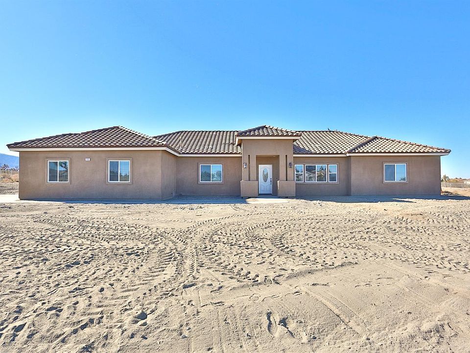 BRAND NEW HOME! This newly constructed home is beautifully appointed. With 2,370 +/- sq ft of living space, 4 bedrooms (4th bedroom offers an option as an office or bonus room), 2 baths, full size laundry, private master suite, and open great room, this home checks all the boxes off your wish list. You enter the home to immediately notice the dramatic 9 foot plate creating high ceilings with custom ceiling design which creates grandeur in the great room which has an enormous living room, dining area, and spacious kitchen with island featuring granite countertops and stainless steel appliances. Bedrooms 2 and 3 are located on one side of the home and share a bathroom across from the laundry. The master suite offers privacy with an oversized bedroom with personal sliding glass door out the back, large walk in closet, walk in custom glass shower, large spa tub and dual vanity for all of the space you would desire. The garage is a large 3 bay garage with extra concrete for easy in and out and room to park. Outside you have a big covered patio with sweeping views of the San Gabriel Mountains to the south and enough acreage to do what your heart desires. Whether you wanted to build a shop, or have horses and corrals you'll have all the space you need. All of this is located in the desired Snow Line School District and easy for commuting to town or to work. Be sure to add this home to your list today!