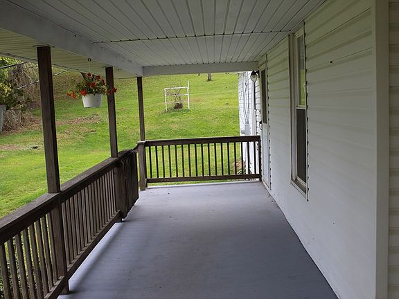 Big country views. This farm house set on 4 acres more or less has a large covered, wrap around front porch. Updated kitchen and bathrooms. Enjoy the 4 bedroom room layout with a main level family room and bathroom. Full walkout basement with a 1 car built in garage under the front porch. Plenty of space to make a garden. Two out buildings for storage or maybe have some chickens. Updated electric service panel, furnace and water heater. Enjoy trout fishing, Piney Creek is in the neighborhood.