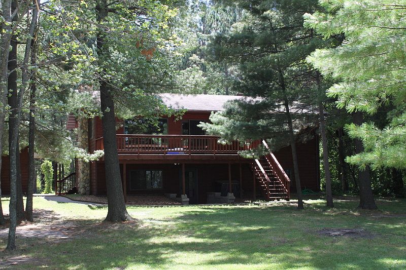 Sorenson Lake: 4BR 2BA, 2300 SF hm. Main flr w/open liv rm, din & eat-in kit w/Westerly views, 2BR BA w/jetted tub & lakeside deck. LL W/O fam rm w/FP, 2BR BA & lndry. 165F lev elevation, excellent sand beach, 2.9 wooded acres, 2car gar & 32x64 out bldng