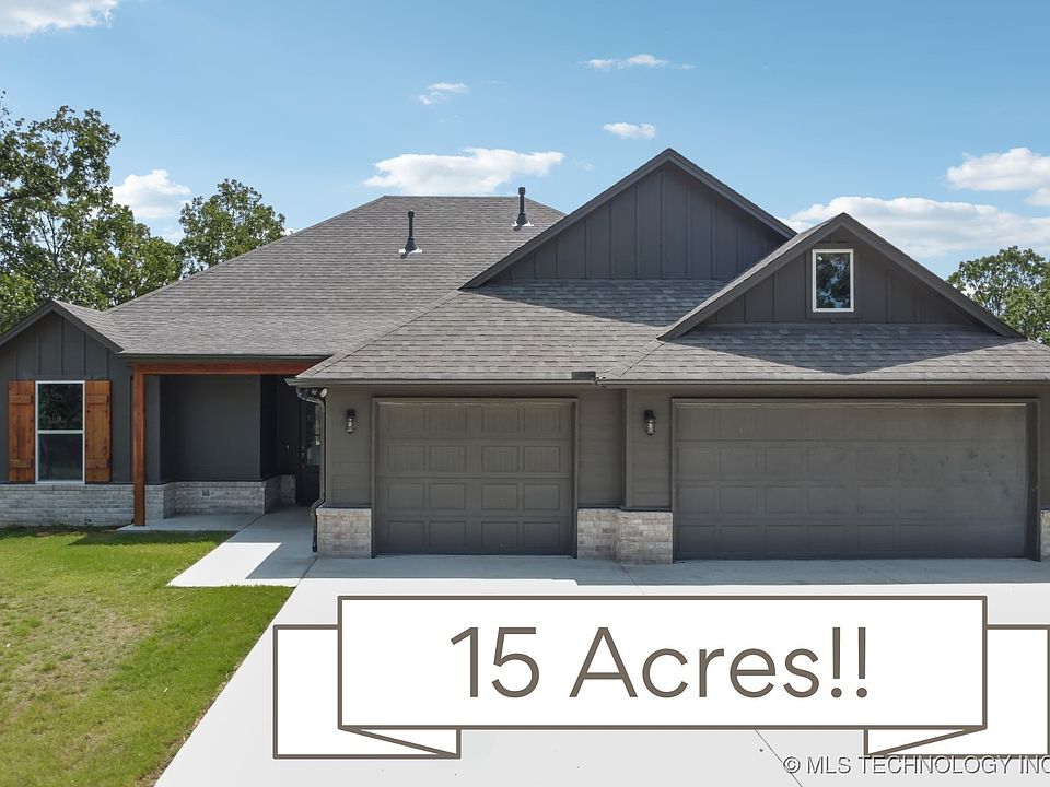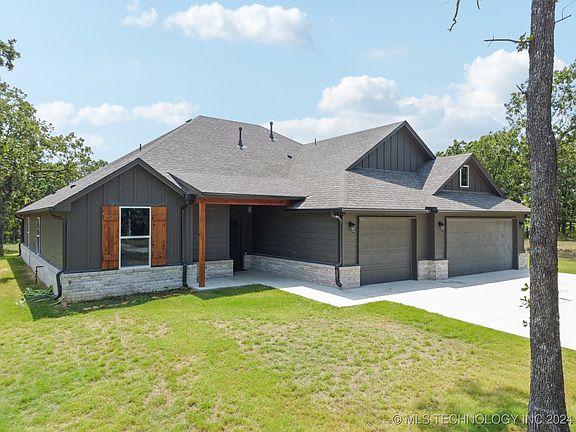 Bring your horses, 4-wheelers, and boat! NO HOA, No hunting or farm animal restrictions. This stunning, newly built home sits on 15 partially wooded acres, just under 10 minutes from Crystal Bay Marina at Skiatook Lake. Designed with a 4-bedroom split floor plan, this home showcases the best in modern living combined with rustic charm.