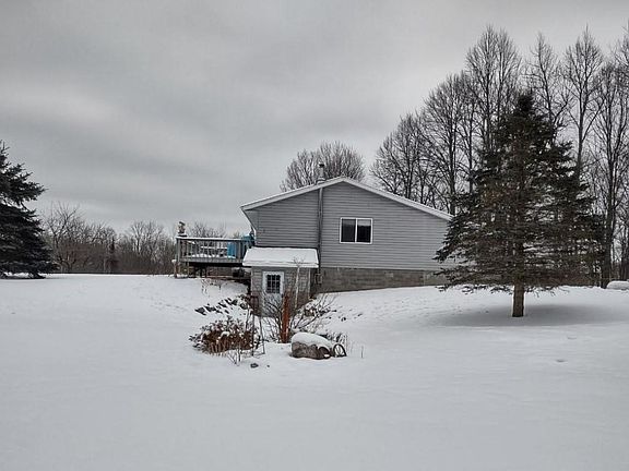 Private 2 BR, 2 BA country home with almost 76 wooded acres, a nice creek running through the property, beautiful trail system, massive backyard with apple trees, and a 2 car detached garage. 69 acres are enrolled in the MFL for lower taxes, and there are plenty of wildlife. This is a one-party listing.