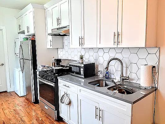 Spacious layout 2bedroom apartment, HEAT AND HOT WATER INCLUDED! Nice living room, new kitchen with granite counters and ample cabinet space, one large bedroom with tons of natural light and big closet. One full/queen bedroom with windows and closet A block away from a supermarket, hardware store, pharmacy and all other shopping needs Good credit and income required
