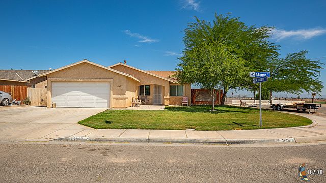 4 bedroom single story on a HUGE corner lot in the north west side of Brawley with large side gate for 40'+ trailer/RV with electrical and sewer hookups already there! This home has no neighbors to the rear and no neighbors across the street to the east which is great for privacy. The backyard has a full length stucco covered patio with PLENTY of space to create your own backyard dreams. Great features include a new AC installed just 4 years ago, tile and laminate wood flooring throughout, stainless steel appliances, 2 car garage, and extra concrete poured on the side of the driveway for another car! This home won't last long at this price!