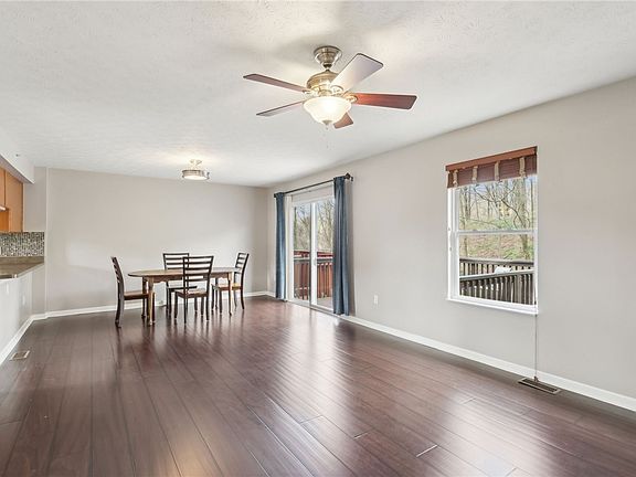 This charming Townhome is ideally located near shopping, dining, and major interstates. Featuring an open floor plan perfect for entertaining, it has been updated with newer ceramic tile in the foyer, bathrooms, and kitchen, and LVT flooring in the living areas. The spacious kitchen boasts leathered Formica countertops, stainless steel appliances, including a gas range, dishwasher, and refrigerator, along with a full pantry. The convenient first-floor laundry includes a washer and dryer. A slider opens to a private rear deck with a wooded view. The primary bedroom offers a custom walk-in closet and an en-suite bath with a ceramic shower stall and cultured marble vanity. Two additional spacious bedrooms and a hall bath with a tub/shower and quartz vanity top. The basement provides ample storage, and there is a large two-car garage.