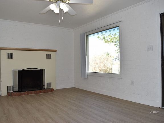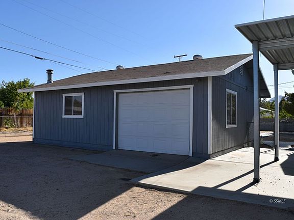 Front yard has mature shade trees and a covered front porch. Large carport. Entry has a new front door. Living room with new vinyl flooring and a brick fireplace. The kitchen and dining room have tile flooring. Kitchen has formica countertops, dishwasher and electric stove with a range hood. Large pantry. Hall bathroom has a new vanity, mirror and light fixture. All of the bedrooms have new vinyl flooring. The master bedroom suite has a bathroom and indoor laundry hookups. Oversized lot totaling .30 of an acre! Rear yard has mature shade trees and a built in BBQ. Large oversized detached garage. 2 evap. coolers. RV Parking. Right next to Inyo County Park.