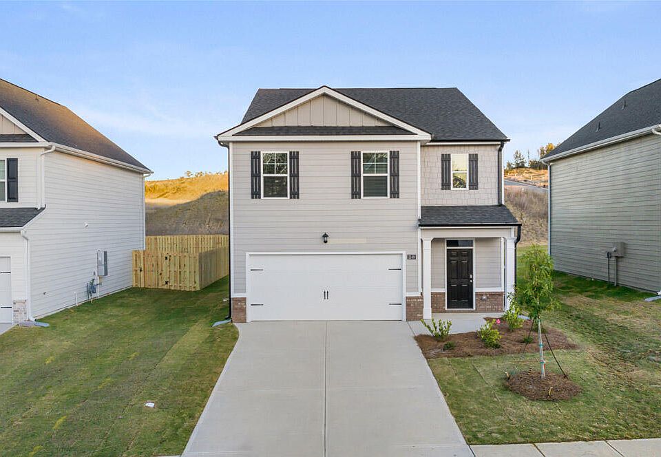 The Robie is move in ready and offers an open concept design to include 5 bedrooms 3 full baths, large Kitchen Island, casual dining area and ample storage. Granite countertops throughout the entire home. Guest bedroom and full bath on the main. Upstairs includes a large landing creating a versatile loft space. Secondary bedrooms include generous closet space. Plug-n-play light switches from Deako Lighting gives you the freedom to personalize your lighting for your lifestyle. B2B two-inch, white, faux wood blinds throughout and you will never be too far from home with Home Is Connected smart home features. Your new home is built with an industry leading suite of smart home products that keep you connected with the people and place you value most. Fully Landscaped yard for curve appeal with 3 zone irrigation system to keep your green grass healthy. Please note this home will not have a fireplace. Pictures, photographs, colors, features, and sizes are for illustration purposes only and will vary from the homes as built. The Estates at Deer Hollow is minutes from Fort Eisenhower Gate 1 and 6. This community embodies luxury resort style living everyday with amenities galore, award-winning schools and an ideal location! A private community swimming pool, cabana, playground, pickleball courts, access to Euchee Creek walking trails and much more.