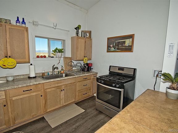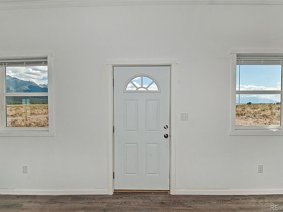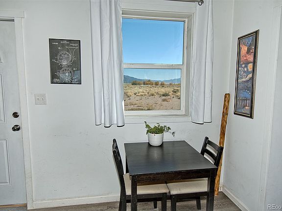 950sf 1BD/1BA off-grid ranch home in the Baca Grande subdivision with low cost of ownership/operation (private well & solar PV). Spectacular panoramic views of the Sangre de Cristo, Mountains, San Juan Mountains, and San Luis Valley. Ideal for retreat, rental or small family. About 15 minutes from the charming town of Crestone & mail, gas, groceries, cafes, restaurants, gallery, hardware, charter school & more. Crestone has recently been accredited as an International Dark Skies community and is known for sunny days and dark starry nights. Walking, Hiking, Camping, Birding, MTB, Rock Climbing, Horseback Riding, Hot Springs, Hunting & Fishing are only some of the pastimes available in the San Luis Valley area. Kitchen features newer appliances, attractive blonde cabinetry, easy-clean countertops, movable island, and washer/dryer hookups. Full Bath with custom-tiled shower/tub and view window. The bedroom features great eastern and western mountain views, also exterior door opening onto the backyard. Enjoy the beautiful colors as the sun dips below the San Juans 60 miles away. Propane and wood heat. Engineered flooring. Low-maintenance metal roof and stucco exterior. 40-gallon Rheem propane water heater. 1.8kW solar PV system with pure-sine inverter has 9kW back-up generator. Engineered septic system. Located near the western edge of the subdivision, there are miles of lightly-traveled roads for walking and a seasonal watering hole nearby for summer enjoyment. This is a wonderful low-cost property with fabulous views in all directions - a great opportunity to live with a small ecological footprint in the sunny San Luis Valley.