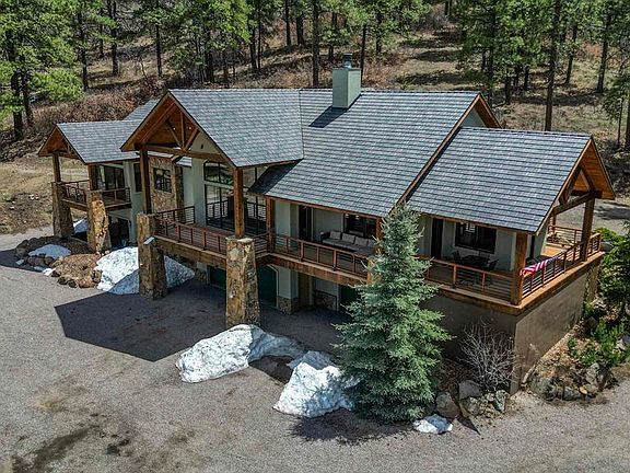 Presenting 1149 Cattle Trail Place, Pagosa Springs, CO -- Nestled on 35.54 acres bordering the National Forest and Spence Creek, this stunning home boasts panoramic views and water rights. The contemporary design features a spacious fully furnished 4,276 square feet with 4 bedrooms, 4 bathrooms, and a 3-car heated 1151 sf garage. Inside, the native rock fireplace serves as a centerpiece between the living and dining areas. The gourmet kitchen is equipped with a Wolf Range, wall oven, and granite countertops, complemented by tumbled Travertine Stone and Australian Cypress hardwood flooring. Expansive windows offer views of Square Top and Quartz Ridge, enhancing the allure of abundant wildlife. Step onto the large covered deck from the living room to savor the sights and sounds of Spence Creek. The primary bedroom on the main level includes a private deck, new Amish furniture, jetted tub, tiled shower, and spacious walk-in closet. Recent updates include new tiled flooring and a converted downstairs bonus room to a family room, adding versatility to the layout. New DaVinchi standing seam roof, new radiant heat boiler, new soaking tub in downstairs guest bath. Entire interior has been freshly painted. Spence Creek runs the length of this property, and 8 shares of irrigation water support the lush front pasture. An outdoor arena with Priefert fencing is ready for roping and riding adventures. Perfect for horse enthusiasts and outdoor lovers, this property offers a rare blend of luxury and value.