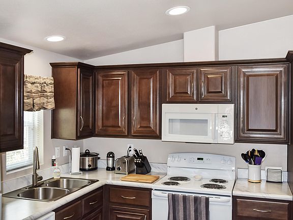 This CAVCO shows like new. Light and bright with upgrades throughout. Open concept floor-plan with a spacious living area. The kitchen opens to the great-room, has a breakfast bar and custom cabinets. Master suite has a large walk-in closet, an attached bath with dual sinks, a walk-in shower and a separate toilet room. Good sized laundry room with cabinets throughout. While away the day on your no maintenance oversized covered deck and enjoy everything Munds Park has to offer.