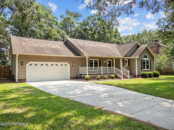 Welcome to your new home! This charming three bedroom two bath home is what you've been waiting for! As you pull in the driveway you will see the two car garage and a front porch that is just perfect to sit out on as you drink your coffee in the morning or enjoy a refreshing drink at the end of a warm summers day. As you walk through the front door you enter the living room with vaulted ceilings and a ceiling fan to cool off under. You then have the kitchen and dining room combination that has just been freshly painted. Off of the dining room is the den with a wood burning fireplace to snuggle up by on a cold winters evening. Exiting the dining room and going out the back door you will be greeted by a back deck which also has a CATIO!! This can be left or taken down prior to closing, you decide! Going back inside and down the hall off of the living room, the first room you will find on the right is the primary bedroom. This spacious primary bedroom has a walk-in closet that's sure to house all your clothes! The primary bath has dual vanity and tiled flooring to make cleaning a breeze! Going further down the hall you will find the two guest bedrooms and the guest bath! Schedule your showing today!