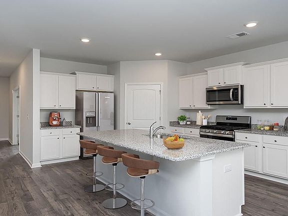 The Elle floor plan offers plenty of space with room to grow. Featuring a first floor primary bedroom with generous bath and walk-in closet. The kitchen boasts a large island with room for seating and opens to the casual dining area and spacious family room. Granite countertops, 36" white painted cabinetry, stainless Whirlpool appliances, and beautiful laminate wood flooring throughout the main living areas all included! There is also a study with French doors on the main level that would make a great home office. Sliding glass doors off the dining area lead to the rear covered porch creating wonderful outdoor living space. Upstairs offers large secondary bedrooms, two full bathrooms, plus an expansive secondary living area. This is America's Smart Home! Each of our homes comes with an industry leading smart home package that will allow you to control the thermostat, front door light and lock, and video doorbell from your smartphone or with voice commands to Alexa. *Photos are of a similar Elle home. (Home and community information, including pricing, included features, terms, availability and amenities, are subject to change prior to sale at any time without notice or obligation. Square footages are approximate. Pictures, photographs, colors, features, and sizes are for illustration purposes only and will vary from the homes as built. Equal housing opportunity builder.)