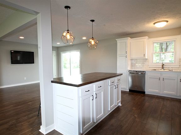 Land, Polebarn,Renovated Home, and Easten Schools! This is what you've been waiting for! This home on a private lot has it all. Four bedrooms and an office that could serve as a 5th, three full baths, two living spaces and tons of gorgeous updates. You walk in to an open floor plan highlighted by the brand new kitchen with all new appliances, cabinetry, quartz countertops, subway tile backsplash, and a butcher block kitchen island with shiplap detail, adjacent to your eat-in kitchen area also featuring shiplap walls and an eye-catching light fixture. All this, open to the living and dining area bookended by a split bedroom floor plan. The master has a walk-in closet built to impress, master bath with butcher block countertops and double vessel sinks, and a subway tile shower. Down the hall are three more bedrooms, and a possible fifth, that could be a small bedroom or perfect for a homework or office area. The second living space is ideal for a family room or playroom for the kids with a full bath adjacent. The back door leads into a mud area and large laundry room. All tastefully designed with new flooring and paint. Outside is a great back deck to sit and enjoy your new country retreat. Detached garage/pole barn has two bays and plenty of room for all of your hobbies. The 5 acres has room for the kids to play and a fenced in portion for an animal pasture. Great location just off Sycamore. Updated top to bottom, new roof, electrical, plumbing, HVAC, water softener, water heater, well pressure tank, Updated windows, even the crawlspace has a new drain tile, new sump pump and new plastic barrier. You won't find a more turn-key property!