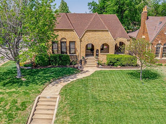 Welcome to 1149, this enchanting bungalow radiates historic charm & timeless appeal. Impeccably maintained and loved, we don’t see them like this very often! The large porch invites you to unwind on the swing after a long day. Inside you are greeted by a spacious living area w gleaming hardwood floors, intricate wood trim, & exquisite fireplace. The Formal Dining Room is perfect for entertaining or game night & the Butler’s Pantry features a beautiful built-in hutch, adding both functionality & character. The Kitchen has been thoughtfully remodeled to add more function while keeping with the historic style of the home. The upgraded 5-burner gas range w double oven, dishwasher, & ss refrigerator convey w the home. The Primary Suite features plenty of natural light, gorgeous wood floors & FULL bath. The Secondary Bedrooms are both generously sized w one featuring additional access to the side porch which would be a great office or secondary living space. Both Bathrooms, are a testament to the home's history, lovingly preserved, their vintage tiles & fixtures offer a delightful glimpse into the past, yet remain perfectly functional for your modern lifestyle. Let’s talk Basement bc this one is amazing! Downstairs you will find a HUGE cedar storage closet, shelving, utility sink, workbench, & loads of additional storage space. Outside the beautifully landscaped backyard offers a peaceful retreat with a flagstone patio, custom fencing, and stunning lawn. Follow the path to the extra large Two-Car Garage plus + Garage Studio - with its own 3rd FULL BATHROOM — perfect for working from home, guests, or home gym. With the rare advantage of 8 off-street parking spaces, convenience is never an issue. Plus, the location is unbeatable: directly across from Memorial Park and just minutes from the vibrant Paseo and Western Ave districts, highways, & Oklahoma City University! This home truly offers a perfect blend of vintage elegance and modern convenience—an absolute gem!