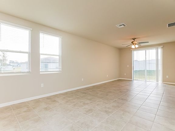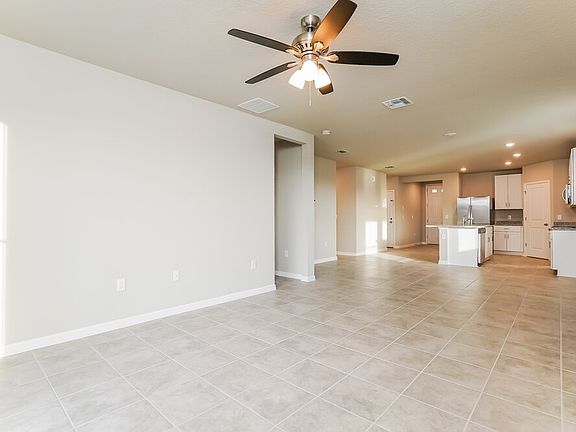 Be sure to put this pet-friendly, new construction rental home on your "must-see" tour list. The home offers three bedrooms, two baths, and a two-car attached garage. Come in through the covered entryway. The main living area is an open floor plan. Tile floors tie the rooms together. The kitchen is lovely with stainless steel appliances and gorgeous countertops. Admire the crisp white cabinetry, the walk-in pantry, and the large kitchen island. The living room has tons of natural light. You'll see sliding glass doors to your backyard and a lighted ceiling fan for evenings. In the peaceful primary bedroom, you'll enjoy a large walk-in closet and dual vanity sinks in the en suite bath. Come take a tour soon!