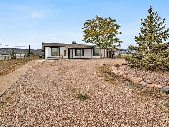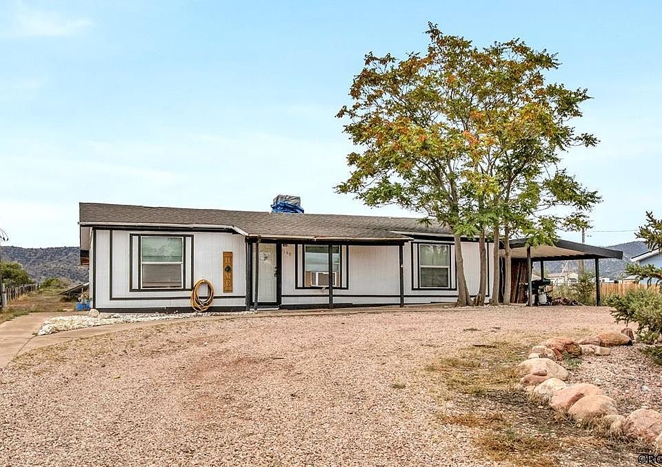 Welcome Home to this Beautifully Updated Home situated on 1 acre with Amazing Views!!! This 3 Bedroom, 2 Bathroom Home is move in ready with new Paint, Carpets, Flooring, Appliances, Washer, Dryer and a Recent Kitchen Remodel. The open floor plan is Perfect for Entertaining Friends and Family. The Remodeled Kitchen boasts newer Appliances, Cabinets, Countertops and Sink. There is also a large Rec Room in the Back of the House that is heated and airconditioned. The Split Floor Design offers a Master Bedroom and EnSuite Bathroom on one side and the Two bedrooms and Bath on the Other. All of the Bedrooms are generously sized. This home sits on a Huge Lot with a New 2 car garage/outbuilding, a Large Dog Run, a Privacy Fence in the Front yard and a Large Driveway. Also, there are Several Storage Closets in the Carport area as well. The roof is Less than 5 years old. Also, this property comes with Solar Panels and the Monthly Payment is roughly $103. What are you Waiting For?? This House is MOVE IN READY, and just Waiting for YOU!!! , Construction: Manufactured