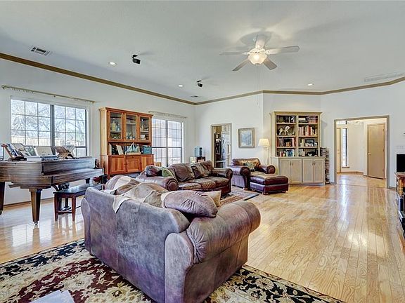 Located in the quiet River Chase Community just minutes away from OU campus, and Cobblestone Creek Golf course off HWY 9. This 3 bed 2 bath home features stunning oak floors throughout the living, kitchen, and dining rooms. High ceilings with floor to ceiling window allows for great natural lighting. Open living space great for entertaining. Kitchen features center island with Jenn Air range, pantry and great storage. Large master bedroom with ensuite featuring soaker tub, shower and walk-in closet. Laundry room is spacious with cabinet storage and sink. In-ground storm shelter in garage. Neighborhood HOA provides lawn care year round, access to the clubhouse and pool, and picturesque walking path throughout the neighborhood. New Class 4 roof going on in two weeks!