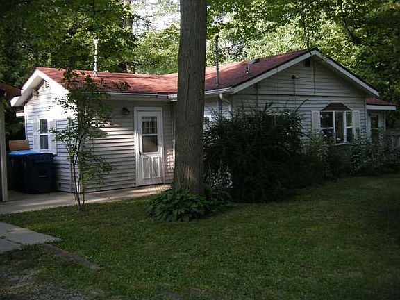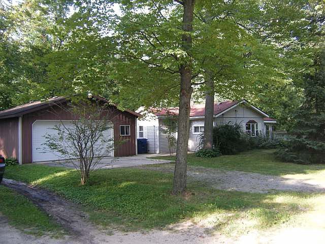 Wixom lake full time home or cottage with lake views and a waterfront access close. 2 bedrooms and 2 bathrooms, open floor plan with kitchen appliances and washer and dryer included. The knotty pine sun porch leads to the deck,and a new shed in the fenced in yard, 24x24 pole barn. The Lake access is just across the road and another one at the end of the road. Just needs fresh paint and floor coverings, nice private fenced back yard!