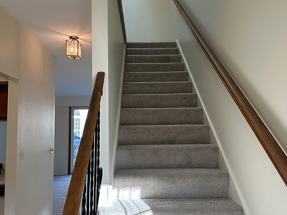 This delightful townhome offers a warm and welcoming space, freshly painted and newly carpeted throughout. On the main floor, enjoy the airy feel of high ceilings and an open-concept living room. The eat-in kitchen overlooks this area, creating a seamless flow. Step outside through a large sliding door to your own patio surrounded by beautifully planted perennials, offering a sweet spot to relax and unwind. The second floor boasts abundant natural light, thanks to a skylight, and includes two spacious bedroom suites. The primary suite features a vaulted ceiling and wall-to-wall closet space, while the generously sized second bedroom includes a walk-in closet. You'll also appreciate the added convenience of a large storage closet and a laundry room on this floor. The property includes a one-car garage with storage space, plus an additional parking space directly in front. Extra storage can be found in the attic and above the garage. Home is sold As-Is, making it a great opportunity to add your own personal touches. Updates: 2011 - new furnace. 2016 - new central A/C. 2018 - all new Andersen windows. 2019 - hot water heater. 2020 - new sliding door. 2023 - new concrete front walk and sidewalk.