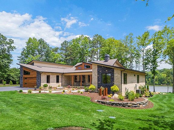 Forever home or vacation home - this stunning retreat on Hyco Lake has it all! Custom built in 2021 on a beautiful peninsula that cannot be built on; totaling about 4 ACRES of private land use! Boasting a spacious main floor, this home is ready for entertaining. Soak in a near 360 degree view through the multi-glide doors that open to the back porch, or the upgraded casement windows throughout the home. Custom roman shades throughout, and even remote controlled in primary suite. The almost 700 sqft screened in back porch can be used year-round as it has 4 large space heaters installed in the ceiling! Over 1500 sqft garage to park your daily drivers in, as well as your recreational vehicles! Park your 50 ft motorhome (full hookups are installed!) winterize your boat, park your classic car collection (20 mins to Virginia International Raceway!) Unfinished basement is plumbed for 1.5 baths, and contains a safe room with steel door and thick concrete walls. Take a gorgeous walk through custom landscape to the coordinating boat dock for some lake fun, or roast some s’mores in the beautiful stone fire pit.
