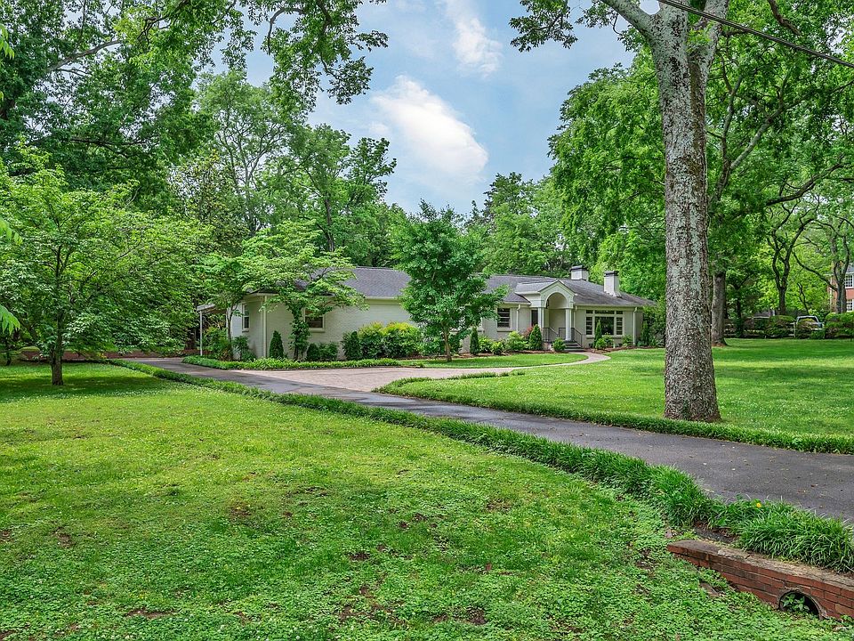 Opportunity for one of Nashville's best neighborhoods on this lush 1.44 acre lot. One level well built and cared for home with all sorts of possibilities for a minor or major renovation. Prime school zone and walkable quiet street in beautiful Oak Hill. Easy access to downtown, interstate, airport and many top private schools. Primary has vaulted ceiling and large den/office with fireplace and vaulted ceiling.