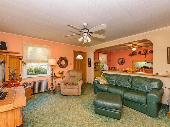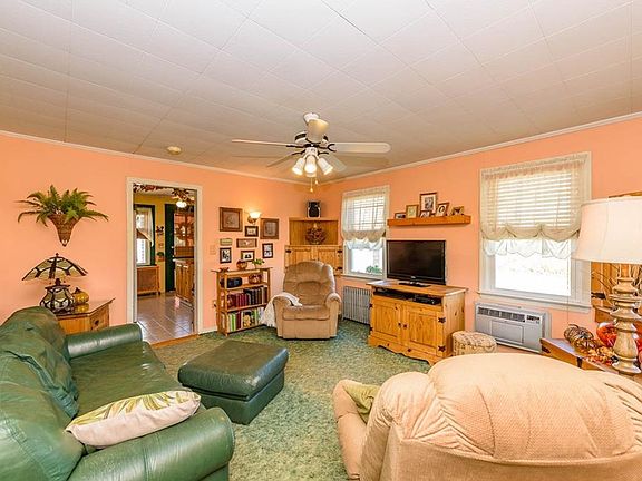 Excellent location!! This corner lot property is zoned OB1. There is a 2 bedroom and 1 bathroom ranch style home. Formal living and dining room. Kitchen with center island. Mud room off of kitchen. Hardwood floors in both bedrooms. Full basement. Enjoy the back yard from the ranch with a deck. Detached 2 car garage and double wide driveway that goes from both ends of the property for convenience. Large workshop as well offers extra space. Oil above ground for heat & hot water; home. Kitchen stove fueled by propane tank. 2 wall AC units & 1 window AC unit. Well water for the house. No plumbing in shop. Cesspool for sewer (not provided with that option in MLS). Enjoy the home and additional buildings on the property or take advantage of the prime location and turn it into a business!!