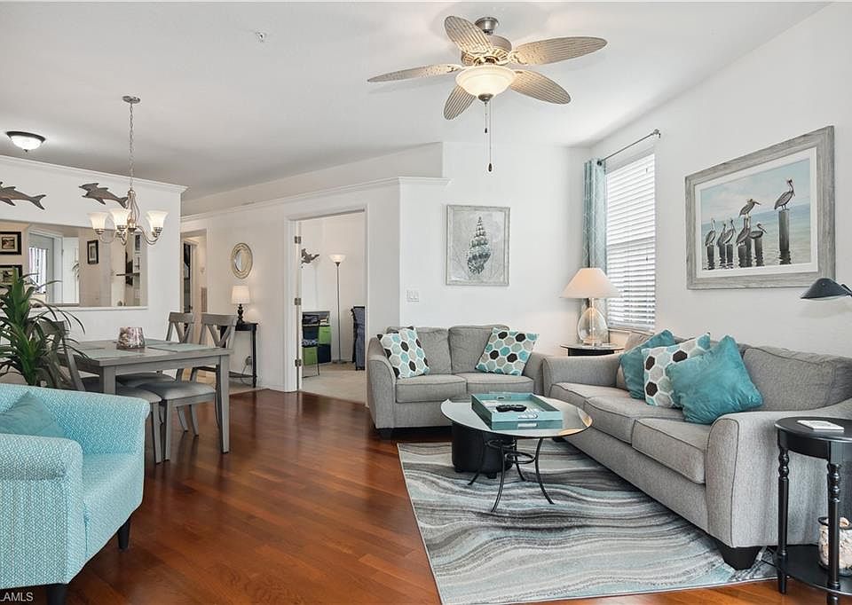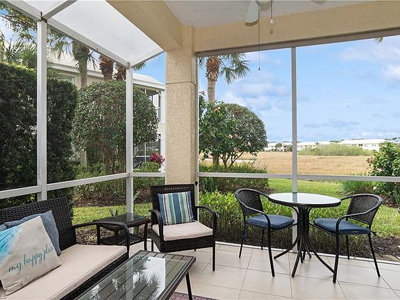 Very well kept cottage style two bedroom plus den two bath first floor end unit condo with Western exposure overlooking the protected Audubon preserve. Enjoy your morning or evening beverage looking out at Floridas beautiful variety of birds including Egrets, Great Blue Herons and Ibis and Wood storks. This unit is being sold tastefully turnkey furnished and is about a 5 minute walk to the resort style amenities. If you love tennis this community offers one of the very best "optional membership" tennis clubs with a low cost membership that has 12 clay tennis courts all lighted for night play plus an onsite USTA teaching pro available for private lessons and clinics and plenty of team match play. Amenities included with your purchase include a Jr Olympic pool, hot tub, fitness center, cabana bar where you can enjoy lunch and a cold beverage as well as a happy hour, Florida style clubhouse with restaurant, pickle ball, bocci, kids play area, walking paths and lighted streets. This is a very convenient Naples location near every amenity imaginable.