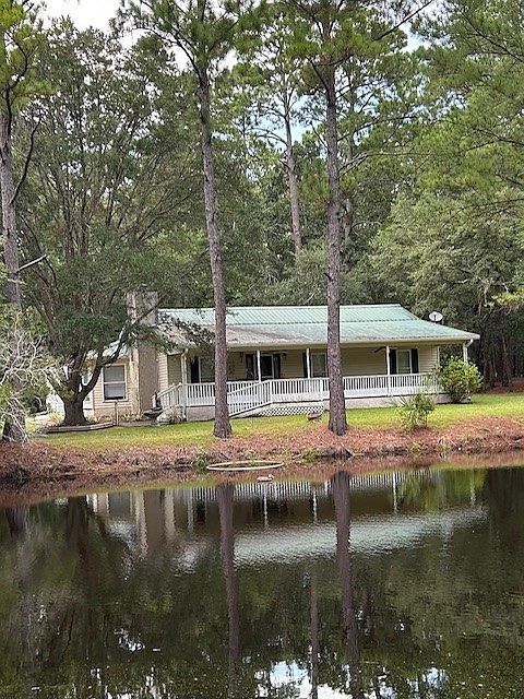 Cute ranch style home adjacent to pond, w/ plenty of privacy.. Front porch extends the full length of the home. Minimal maintenance vinyl siding and metal roof. This home features double carport under roof, w/ a storage building and additional workshop, along w/ a metal carport for boat storage. Open kitchen to breakfast area and vaulted living room w/ fireplace. This house is a Shellman's Bluff fishermans dream w/ plenty of parking for additional vehicles.