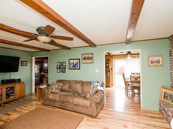 Welcome to 20 acres in Centertown with a cute as a button home! This property is an easy drive to Jefferson City, but you are definitely living the country life! Take in the GORGEOUS views on the back patio. You can watch the neighbors' horses and buffalo! The current seller mows 13 acres. The other 7 acres are wooded. This is a hunter's delight as there are numerous deer and turkey. The Moreau River is approximately 1 mile away, so it's great for fishing, too! The home features STUNNING white oak hardwood floors installed 3 years ago. The kitchen has an island and newer stainless steel appliances, which were installed 6 years ago. The current family room can easily be a 4th bedroom. Beautiful wood beams really give it that farmhouse feel, along with the wall to wall fireplace.
