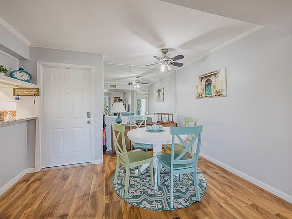Modern kitchen featuring marble countertops. Spacious bedrooms with ceiling fans in every room. Large primary bedroom with a walk in closet and large walk-in shower. Washer, dryer, and fridge included. AC compressor just replaced. Whole HVAC system July 2021 and new thermostat. One covered parking space #109. HOA is painting the interior of all buildings.