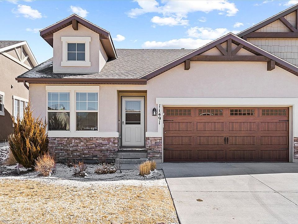 Move-in-Ready paired patio home in the beautiful neighborhood of The Reserve at North Creek! Ready to go is a fully finished 3 bed, 2 bth and 2 garage. Enter the house and you will be impressed with wood floors in the main area, vaulted ceiling, office and large open kitchen/family room that walks out to the patio. You will love the kitchen with a spacious area to cook, stainless steel appliances, granite counters, area for stools at the counter and a dining table. The Master bedroom is on the main level with a walk-in shower, double vanity and large walk-in closet. In the family room there is a gas fireplace with beautiful rocks setting it apart. Enjoy the area with the family or use the large rec room in the basement to spend quality time together. In the basement you will find the large rec room, two more bedrooms, with walk in closets and a full bathroom. The laundry is on the main level and in the basement there is plenty of storage or bonus space in the mechanical room. Located in D-20 schools close to shopping, restaurants, movie theaters, hiking and biking trails and easy access to HWY 25 with travel time to Denver in approx. 40 minutes and to the Powers corridor in approx. 10 minutes. New roof! This home is ready to move in just waiting for you.
