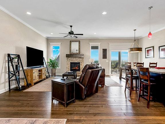 This stunning Reverse 1.5-story, set on an expansive fenced lot with a walkout patio, offers 4 bedrooms and 3 baths, combining luxury and comfort in every detail. The main level features a spacious primary bedroom with a luxurious en-suite bathroom and a large walk-in closet that conveniently connects to the laundry room, complete with a sink. An additional office/second bedroom is perfect for remote work or guests. The gourmet kitchen is a chef’s delight, boasting a gas range, a large island, and a walk-in pantry. Enjoy your morning coffee or evening relaxation on the covered deck off the breakfast area, offering breathtaking views of the valley.
