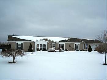 Peace and tranquility are just a few things that come to mind when viewing this property. This manufactured home offers 1930 square feet, 3 bedrooms, 3 bathrooms, living room, family room with fireplace, 2-car attached garage, 30x40 pole barn all on 2 acres. Roof, skylights, attached garage and addition are only 5 years old. Furnace, A/C, carpet and tile have been replaced in 2010. Additional features include master bath with jetted tub, double bowl vanity, upgraded light fixtures, 3 Seasons Room, large deck, fenced area in backyard, storage shed and landscaping. All appliances and home warranty with an acceptable offer.