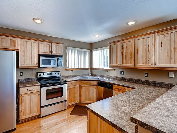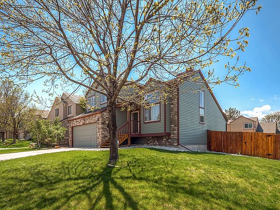 Come and see this wonderful home in an absolutely great location! There are lakes, trails, and open space very close to enjoy. There is also a good view of the mountains from the back patio. The back yard is spacious with well taken care of grass and plenty of room to garden if desired. This home has an open layout, with a double sided fireplace you can enjoy in your living and family rooms. As you enter the kitchen you will notice the beautiful hickory cabinets, stainless steel appliances, corner windows, and other natural light. The floor is newer (2012) in the dining/family room, and the furnace is newer (2010). Up stairs there are 3 good sized bedrooms and 2 bathrooms. The master bedroom is equipped with a master bath with 2 sinks, walk in closet, vaulted ceilings, and a skylight as well. In the basement there is plenty of room for storage or potential to be finished. Don't miss out on this wonderful home in a great location!