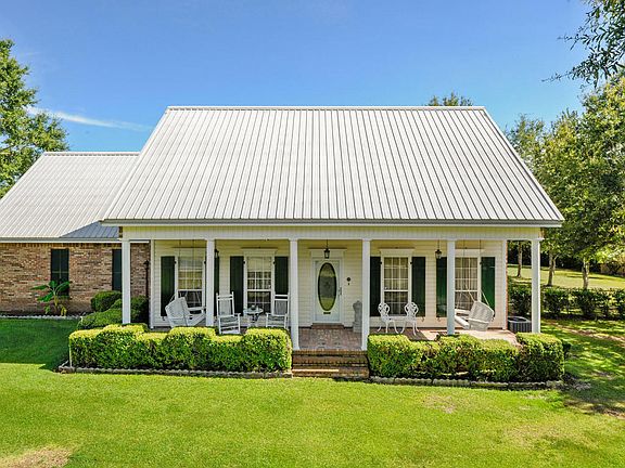 This is it! A country feel on almost 3 well groomed acres;yet 5 minutes to I-10 and endless shopping possibilities. This well built and immaculately kept home will be an affordable option with newer Hvac ,metal roof, and well and septic. Quality shows in the Brick facade, heart pine and brick pavers flooring,wood moldings. A traditional floorplan with living room and gorgeous fireplace, sunroom for multiple uses, galley kitchen with granite counters, large den and many windows to overlook back yard. A workshop with dual doors and bath could be converted to an in law suite. Master is on first floor with hand painted murals and a jacuzzi tub , large walk in shower and beautiful vanity with vessel sinks.Other bedrooms /bath up and a tiny sewing nook and attic space. A true treasure to see