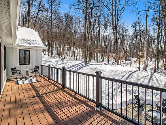 Welcome to this stunning newly constructed 5-bedroom, 3.5-bath home located at the renowned Crystal Mountain Golf and Ski Resort. Nestled in the scenic neighborhood of Mountain Woods, this home is on just under an acre of land and the perfect blend of modern design and mountain style living. From the moment you step onto the property and into this home you will appreciate the tasteful design, high end finishes and thoughtful floor plan making this home move-in ready. The main floor boasts a spacious living room with luxury vinyl flooring, soaring ceilings and large windows that let in natural light with a gas fireplace making for a cozy setting to relax and enjoy the wooded views. This flows seamlessly onto an expansive back deck made of low-maintenance composite board decking, ideal for entertaining or simply relaxing in the tranquil surroundings. The gourmet kitchen is a chef’s dream, featuring premium GE Cafe appliances, a large island for casual dining, a pantry, and quartz countertops. The main-floor primary suite is a true retreat, offering a generous walk-in closet and a private bathroom complete with double vanity sinks and a beautifully tiled shower. This level also includes a guest bedroom, a full bath and a large laundry room for added convenience. Upstairs, you'll find a versatile space that can serve as a fifth bedroom or a family room, toy/craft space and is complemented by a half bath. The walk out lower level offers plenty of space for your guests with two additional bedrooms, full bath, a large family room complete with a wet bar and a flex room perfect for a home office or gym. Step outside and find a large patio with fire pit perfect for enjoying the outdoors. This home provides an exceptional lifestyle with outdoor recreation just outside your door including golf, skiing, pools, spa/fitness center, hiking/biking trails and more. Neighboring towns of Beulah and Frankfort provide access to Lake Michigan, Crystal Lake, quaint shops and restaurants.
