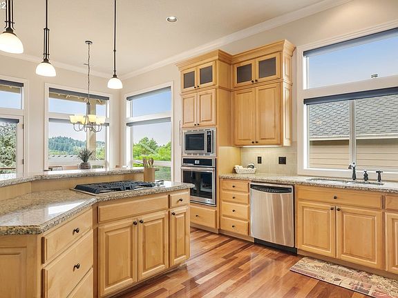 Features 2 master suites. One on each level. Provides separate living qtrs. Valley views. Kitchen w/pantry & butler's qtrs. FR, LR & DR w/high ceilings. Master w/remodeled bath & 2nd bd/office on main. Bsmt: 2nd FR, 2nd suite, 2 more bdrms, media room w/screen & projector & full bath. Utility rm on main. Electronic blinds on main lvl. Great in home storage. Gorgeous home. Close to schools and Happy Valley Park. A total 10.