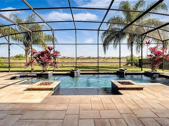 Lake Burden ** Water front POOL HOME with canal access into Lake Burden** Extremely private lot ** Outstanding upgraded heated saltwater pool with beautiful raised planters and fountains plus a fabulous full outdoor kitchen with grill, refrig, pizza oven and dishwasher incl ** Huge screened lanai with covered area the length of the home, spacious patio area and an outdoor masonry gas fireplace ** Upgraded kitchen with espresso cabinets, stainless steel range hood, separate island and breakfast bar with stylish granite and walk in pantry. All kitchen appliances including built in double ovens, refrigerator, dishwasher are incl ** First floor with lovely crown moldings and attractive wood tile ** Family room with LED electric fireplace overlooking the pool and fantastic outdoor living area ** Formal dining with lovely tray ceiling ** 2 story foyer with dramatic soaring ceilings and wood staircase ** Large loft area with the same espresso wood flooring as the staircase ** All windows have heat shield (except sliding glass doors) ** 5th bedroom perfect for an office area, nursery or activity room ** Community features incl a waterfront common area, community pool, clubhouse, fishing area, playgrounds, tennis courts and a community dock ** Walking distance to Publix, restaurants, business services and more! Only 10-15 mins to Magic Kingdom & Disney Springs! All room measurements are approximate. Buyer to verify all room measurements.Refrigerator in garage does not convey. Canal frontage is estimated. Tax records incorrect 5 bedrooms instead of 4 bedroom.