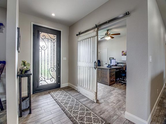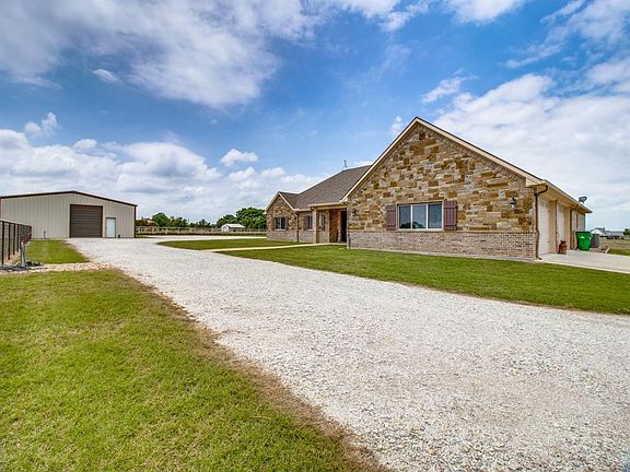 Like New Ag Exempt 3,243 Sq ft Builders Custom Brick & Stone Home on 9.7 Acres that adjoins a Shared Lake*Quiet Area of Pilot Point & conv. to Tollway & 380*Gated entrance w pipe & cable*Heavy Custom Iron front door greets your guests*Custom Office w built ins & Formal Dining or flex room flank the entry* Large open living & Kitchen w tons of custom features make for great entertaining*See Owners Attached Amenities Lists*Gourmet kitchen w Granite Island & Bar*3 Guests rooms w Full Baths*Large Walk in Pantry*Extended 4 Car Garage*Saltwater Play Pool w attached Spa seats 8 & waterfall feature overlooking 9.7 Acres* 3 Stall Barn w wash rack,Tack room & water to stalls*40x80 Shop w Roll up doors for RV & all Toys!